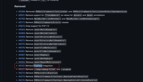 はじめに こんばんは。 よく現場でも prophecy つかってたのですが、今の現場では phpunit7とかを触っていまして、最新版のphpunitを触っていませんでした。 今日偶然テスト系の調べ物していて、最新版のphpunitを触って気づきました... ちなみにバージョン…